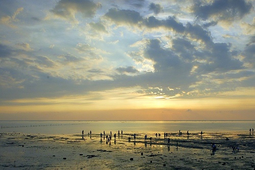 還沒有走入溼地,光是站在步道上就看到好多螃蟹呀!大大小小的螃蟹從泥堆裡爬出,驕傲得橫著走路,一窩蜂的成群移動,甚是壯觀呀!除了小螃蟹還有彈塗魚呢~真是個有趣的生態活動~感覺也蠻適合來這戶外教學呢!!!